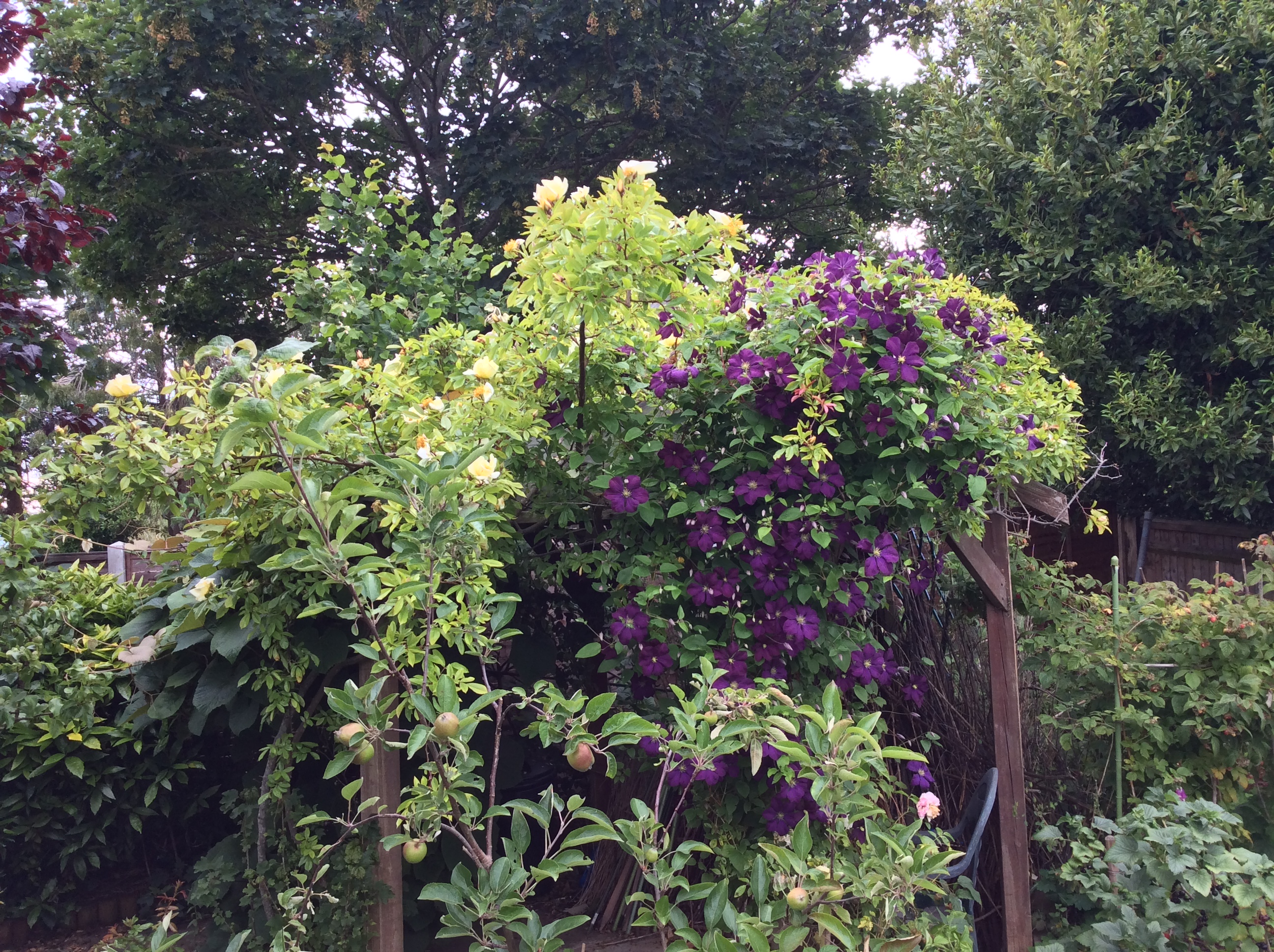 One of the joys of returning from being away is to see how things have grown back at home. We found the garden paths swamped by midsummer lushness.