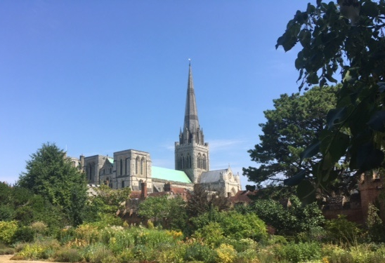 Stane Street begins in the Roman city of Noviomagus Reginorum, or Regnentium, later renamed Chichester by the Saxons. Chichester, with its ample and sheltered harbour nearby, was an easy entry point into Britain. The early spire of the 12th century Cathedral, can be seen from miles around, a great vantage point for its resident peregrine falcons that have just returned to the cathedral for another nesting season.