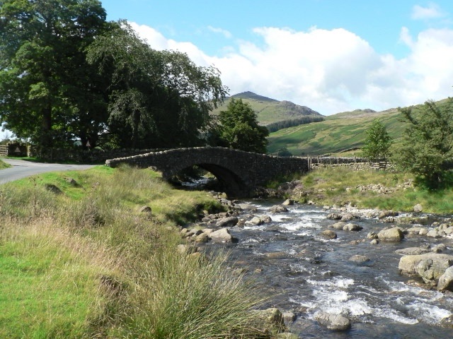 Here the stream is slowing its pace as it passes under this old Lakeland stone bridge. Trees clothe the banks and the riverside vegetation grows more lush with ‘wild strawberries, thyme and ‘trembling eyebright – sapphire blue’. Turn left before the bridge and the road goes to the Roman fort on Hardnott pass.